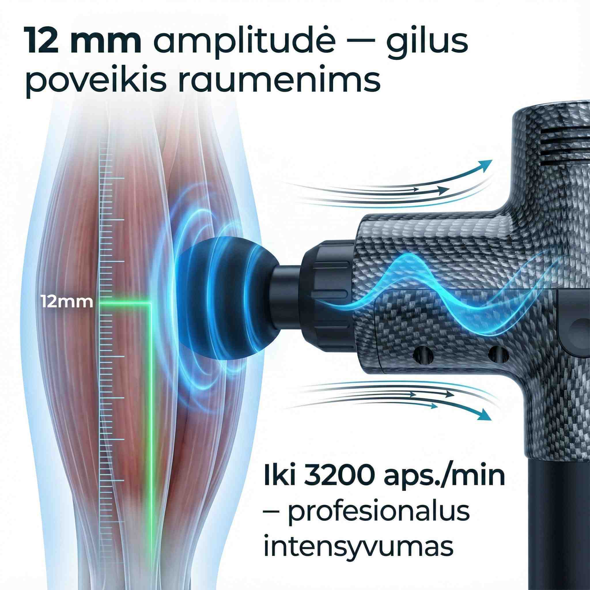 "12mm amplitudė tikrai jaučiasi - gilus ir efektyvus masažas. Rekomenduoju!"